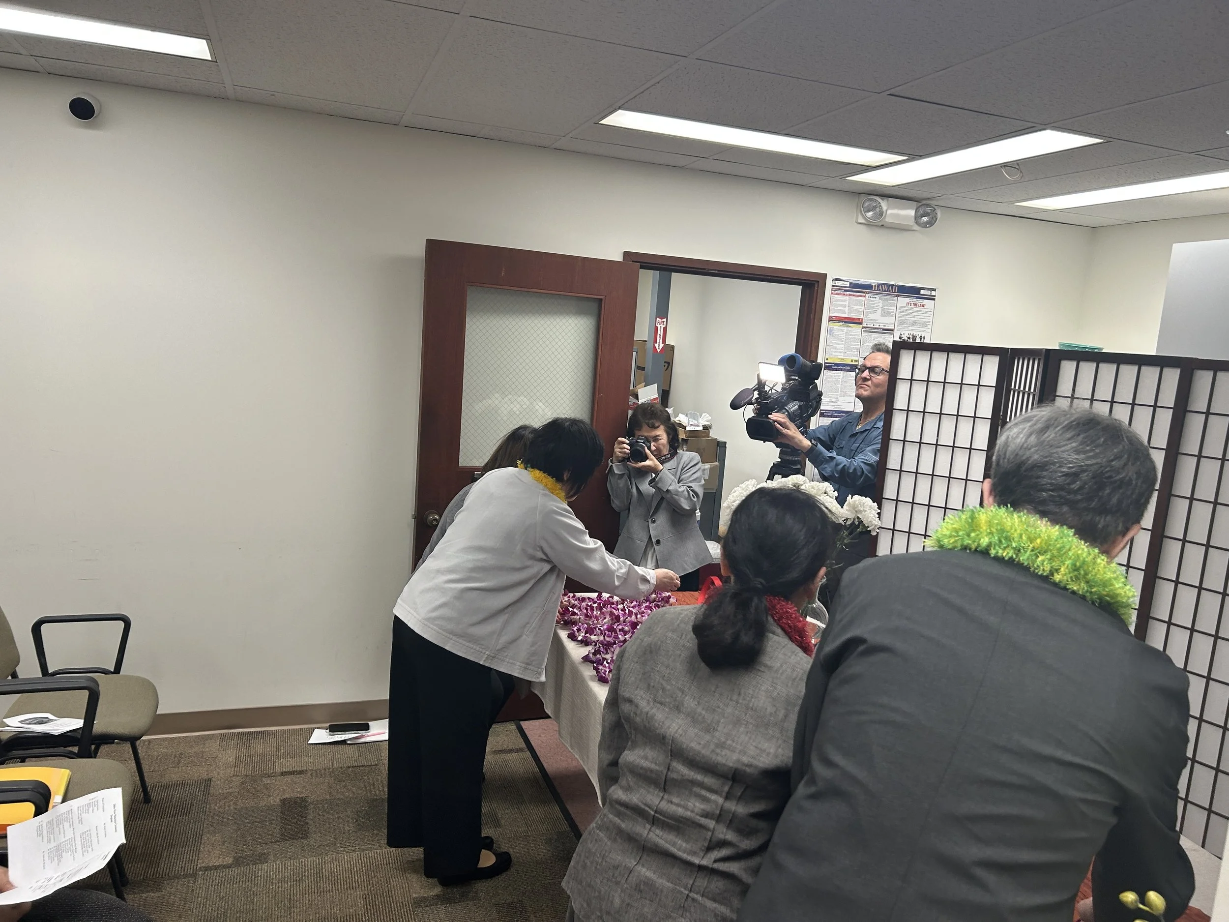 On Monday, February 9, 2026, the Ehime Maru Memorial Association (EMMA) held the 25th remembrance ceremony of the accident that claimed the lives of nine Japanese crew members, including four high school students on board the Uwajima Fisheries High School training ship Ehime Maru. Due to the state of emergency declaration and the closure of government offices and public parks caused by severe weather conditions, the private ceremony for bereaved family members and guests traveling from Japan was held at the Japan–America Society of Hawaii office. The alternative venue provided a safe and appropriate setting for the gathering, ensuring that the ceremony could proceed respectfully despite the unforeseen circumstances.