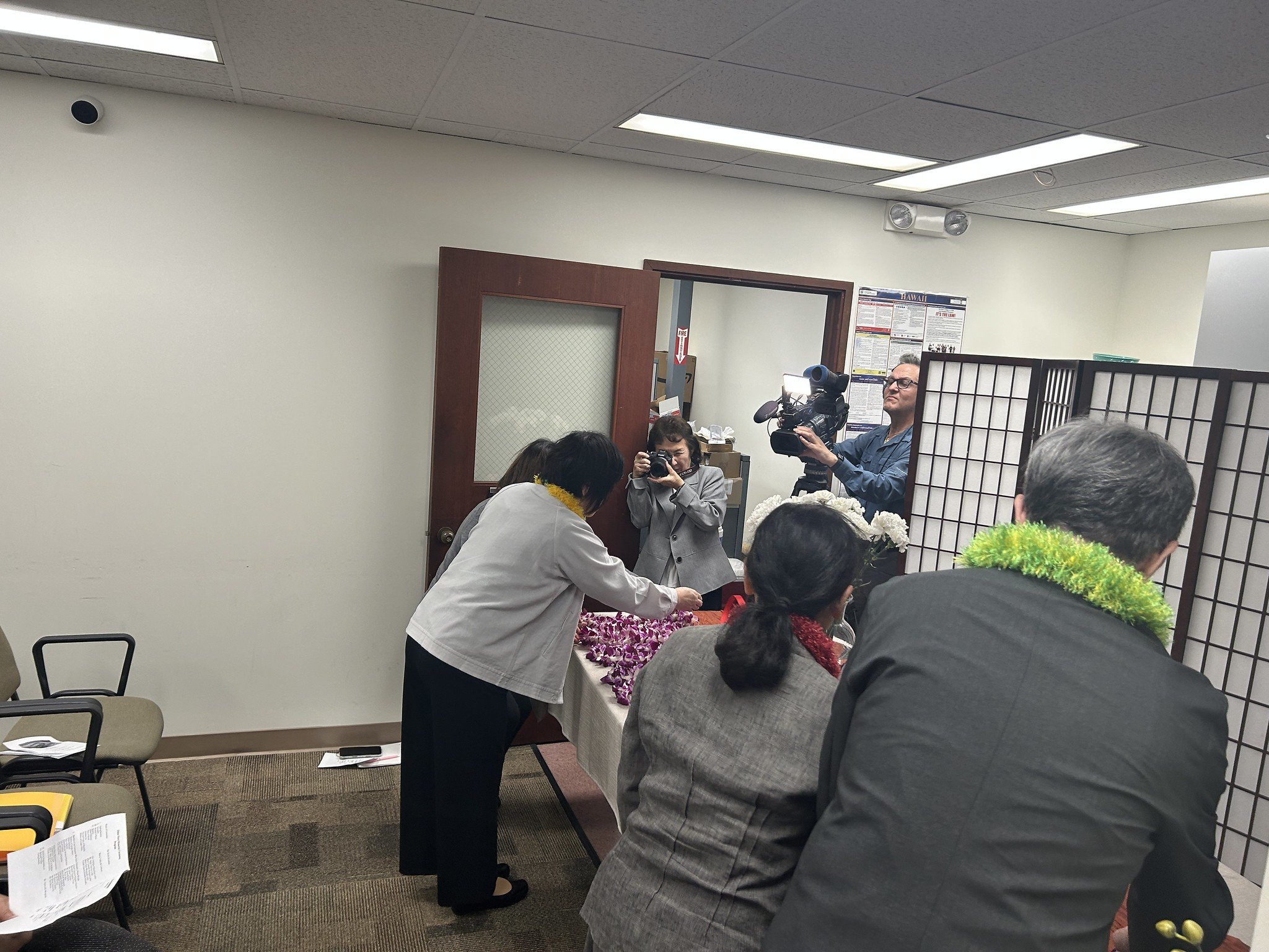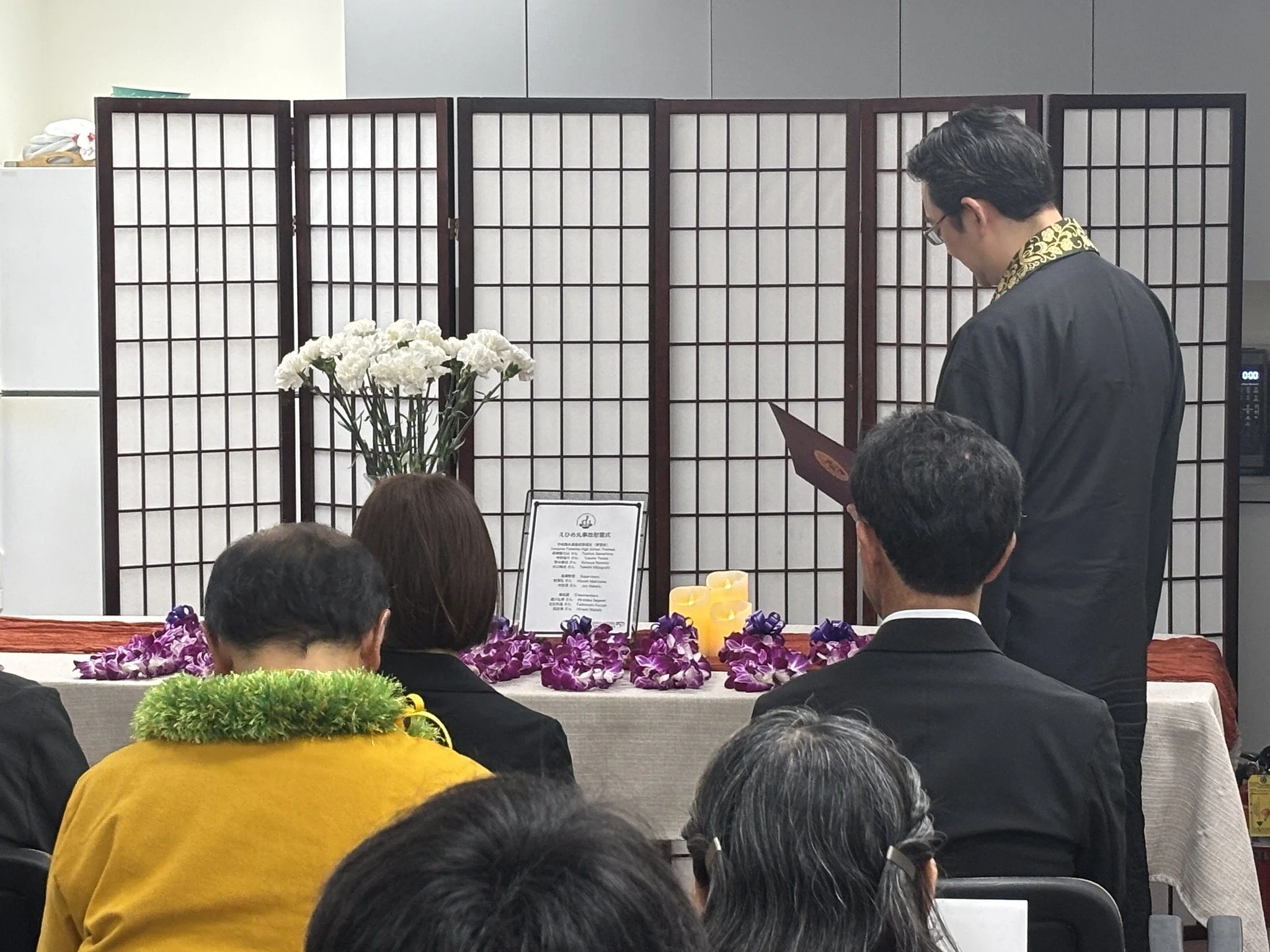 The private ceremony brought together representatives from the Consulate General of Japan in Honolulu, bereaved family members, and members of the Uwajima City Hospital, and various volunteers.