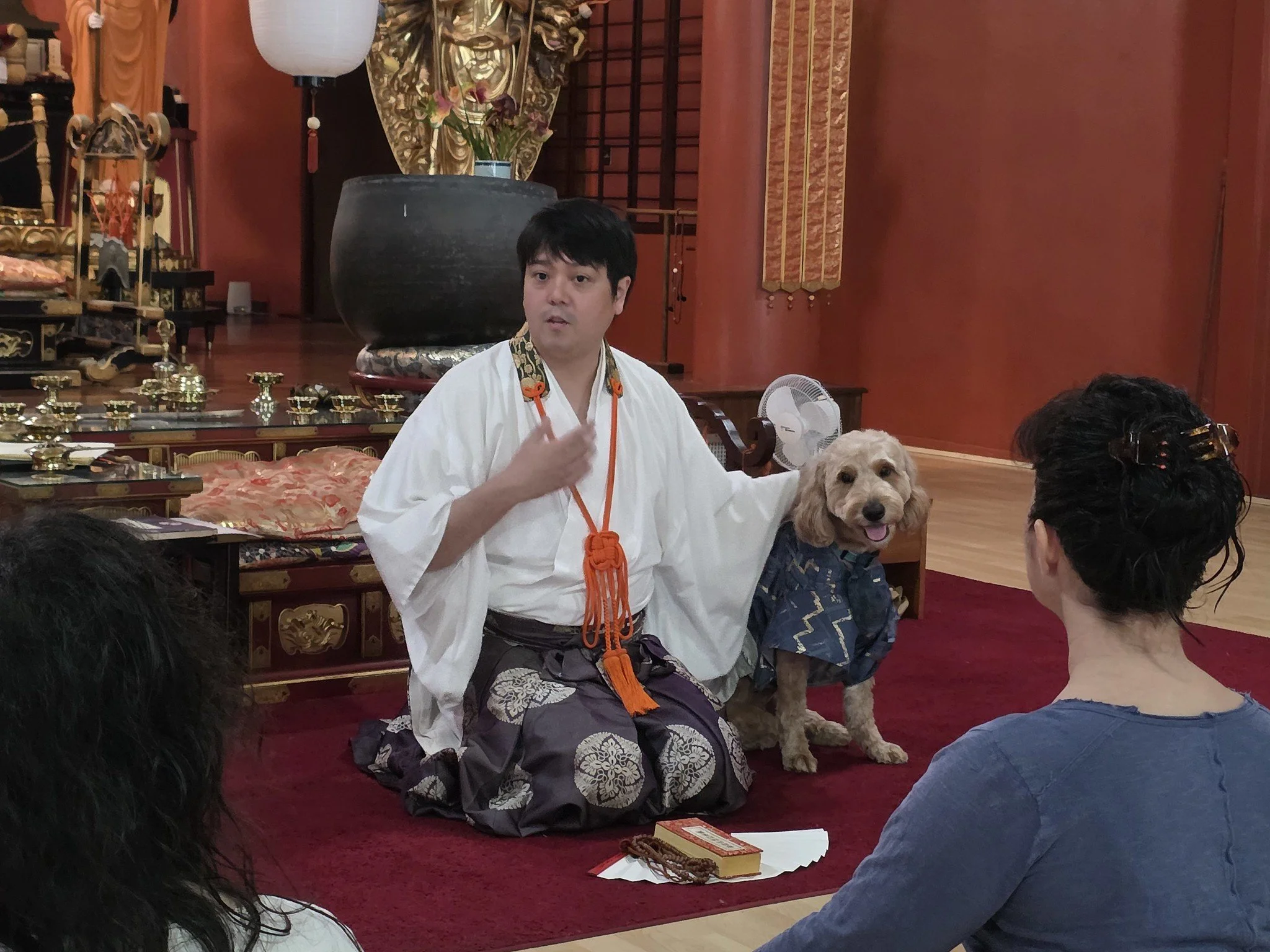 Bishop Hirai led the group through a multifaceted program that included meditation instruction, participation in waterfall meditation - Taki Gyo, Buddhist dining practices, and a concluding lesson in meditative scroll writing.