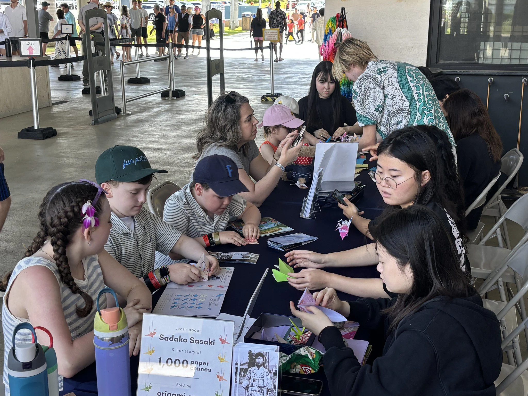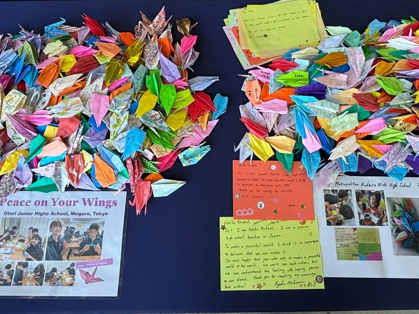 On September 27, students from Punahou School’s Kokoro Konnect, a student-led organization, participated in our Sadako Peace Project. They engaged with visitors from England, South Korea, and across the U.S., sharing a variety of beautifully folded peace cranes generously donated by students from Kodaira Nishi High School and Otori Junior High School in Tokyo.